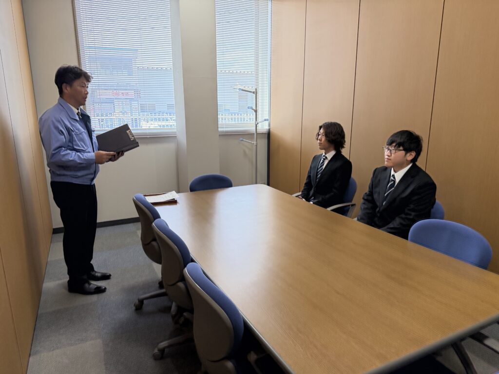 2026年4月入社の新入社員の内定式を行いました。来年4月には2名の新入社員が入社予定です。